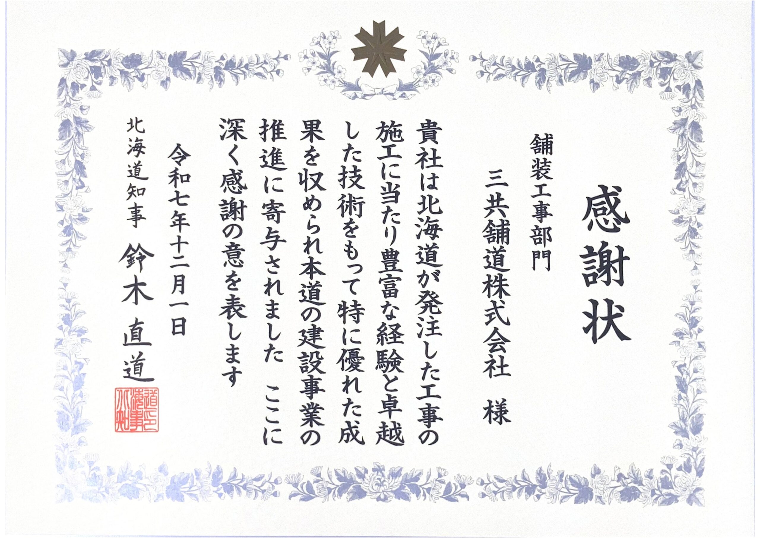 令和元年度 札幌市建設局土木部所管工事優秀施工業者表彰